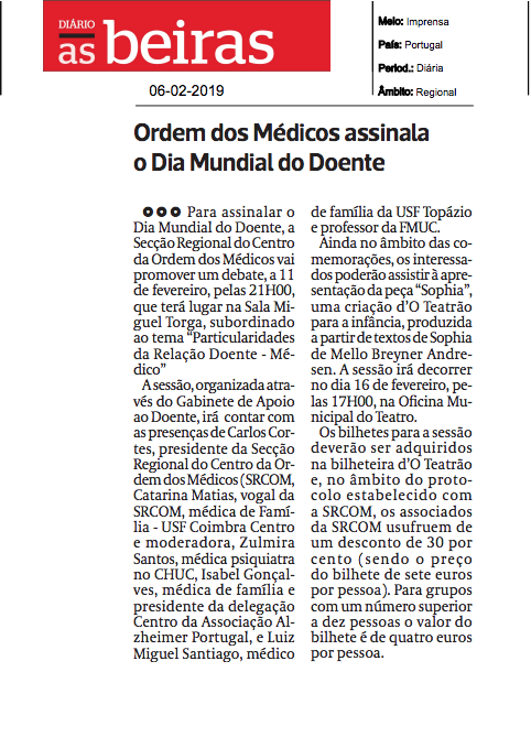 Ordem dos Médicos assinala o Dia Mundial do Doente