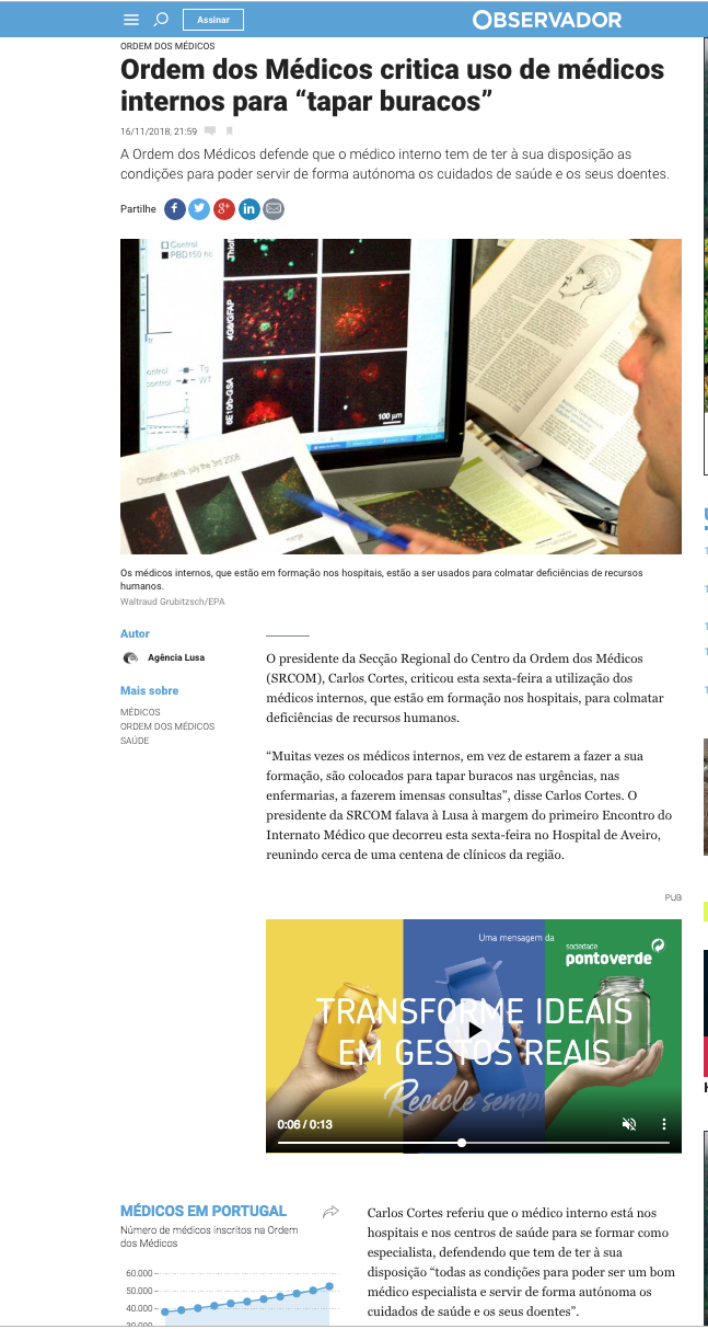 Ordem dos Médicos critica uso de médicos internos para “tapar buracos”