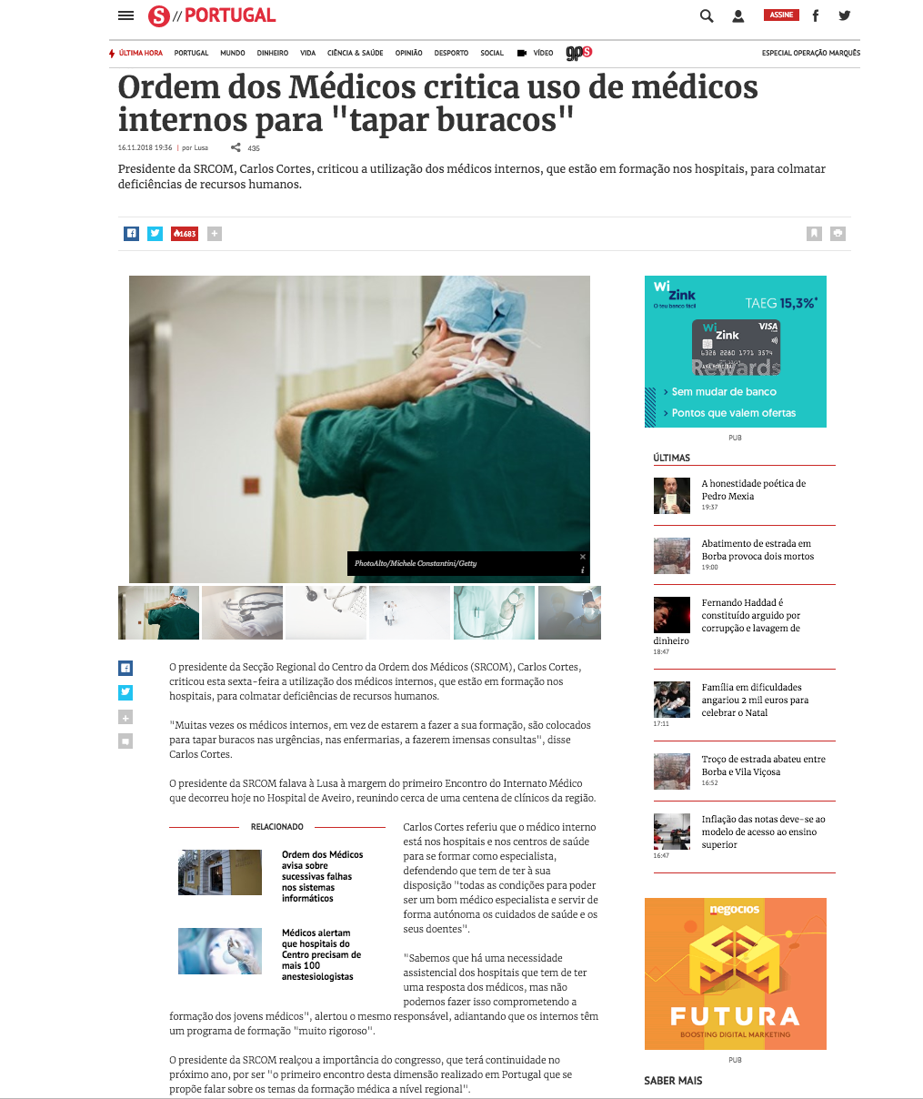 Ordem dos Médicos critica uso de médicos internos para “tapar buracos”