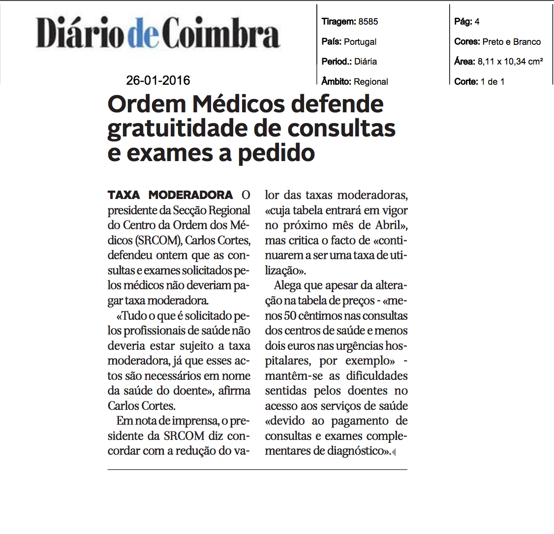 Ordem dos Médicos defende gratuitidade de consultas e exames a pedido do médico