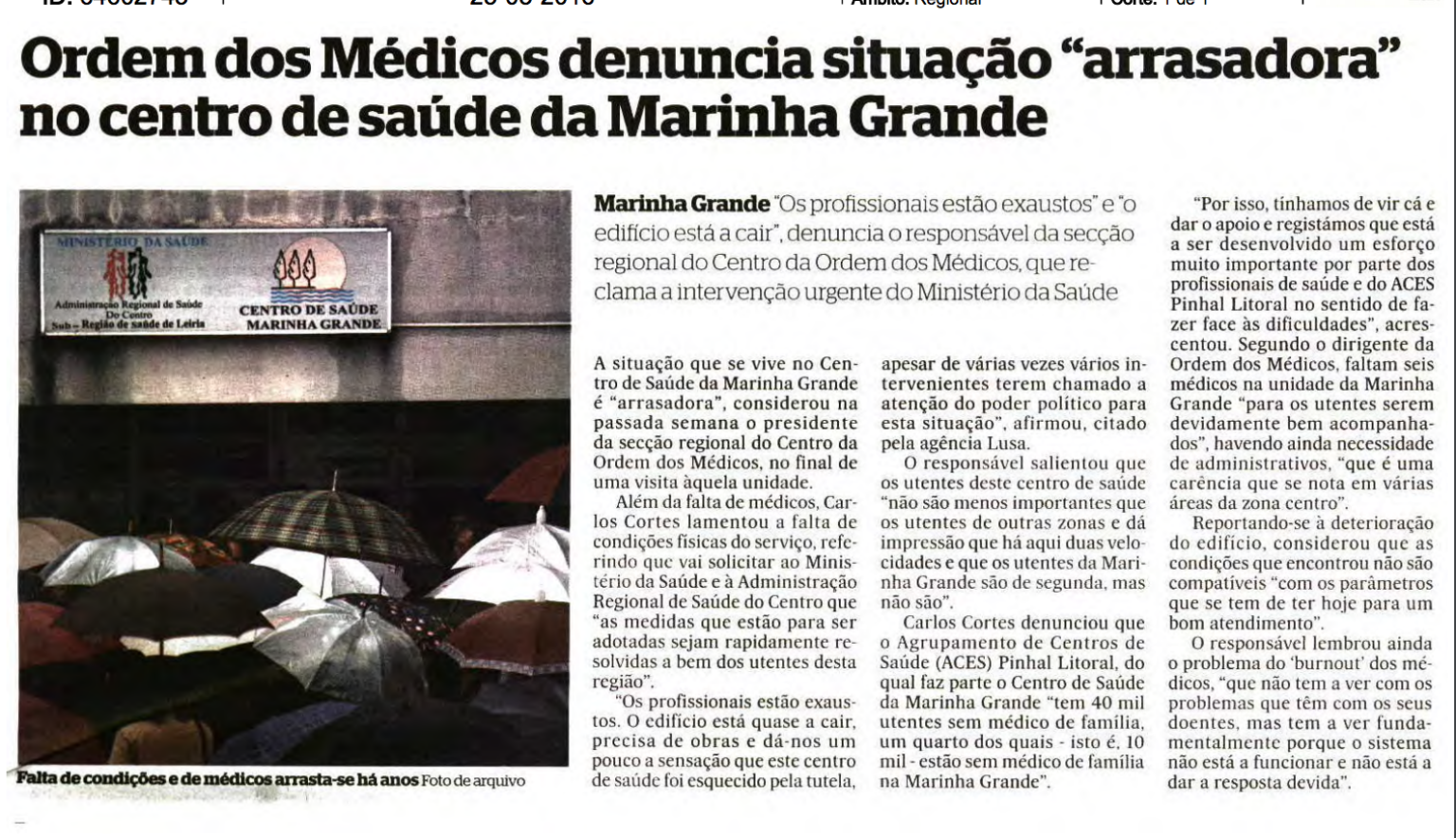 Ordem dos Médicos denuncia situação “arrasadora” no centro de Saúde da Marinha Grande