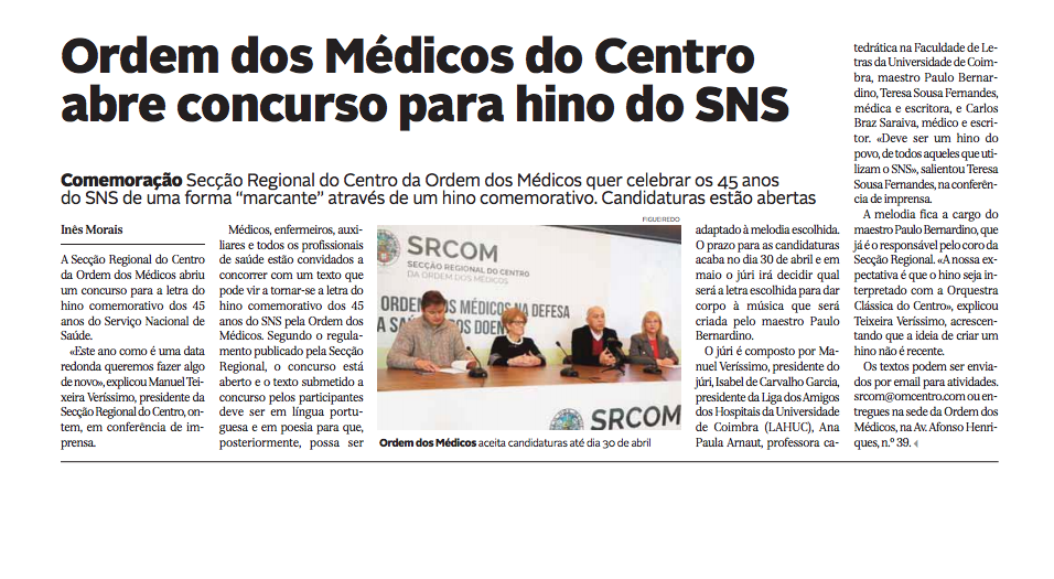Ordem dos Médicos do Centro abre concurso para hino do SNS
