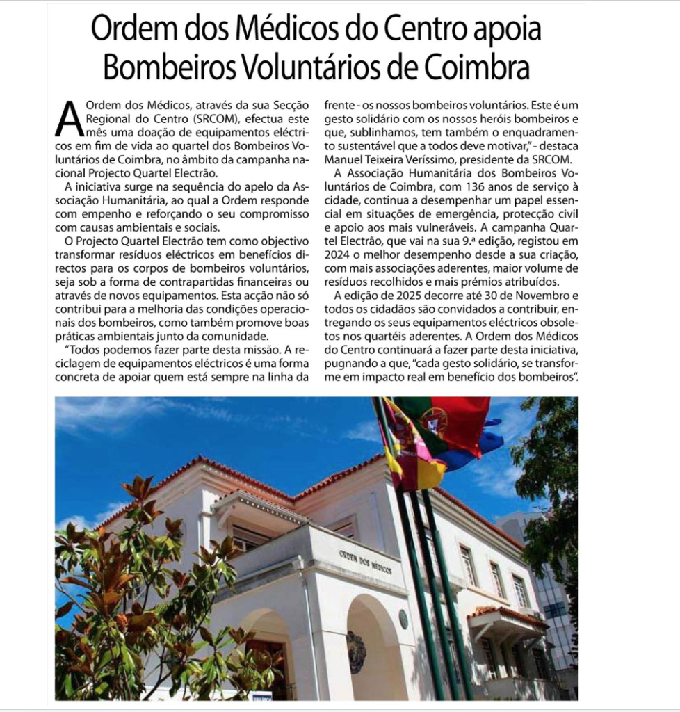 Ordem dos Médicos do Centro apoia Bombeiros Voluntários de Coimbra