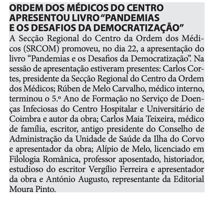 Ordem dos Médicos do Centro apresentou livro “Pandemias e os Desafios da Democratização”