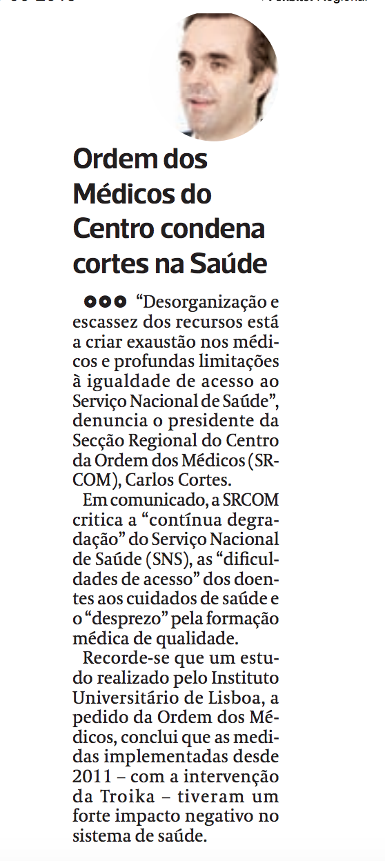 Ordem dos Médicos do Centro condena política de cortes na Saúde