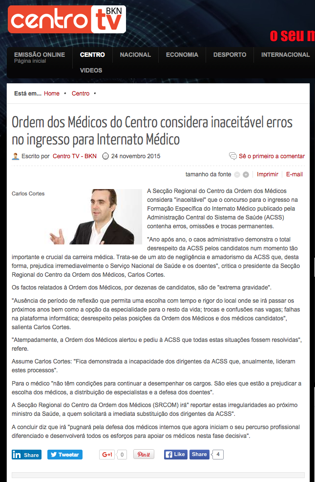 Ordem dos Médicos do Centro considera inaceitável erros no ingresso para Internato Médico