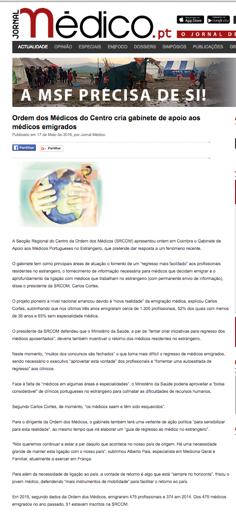 Ordem dos Médicos do Centro cria gabinete de apoio aos médicos emigrados