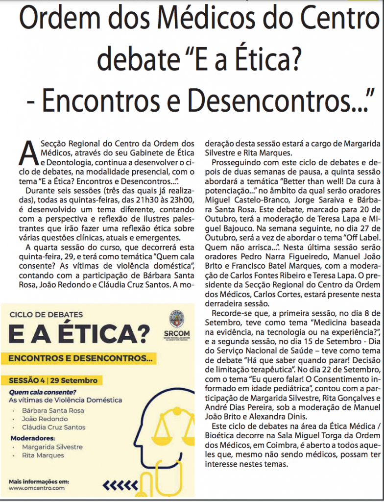 Ordem dos Médicos do Centro debate “E a Ética? – Encontros e Desencontros…”