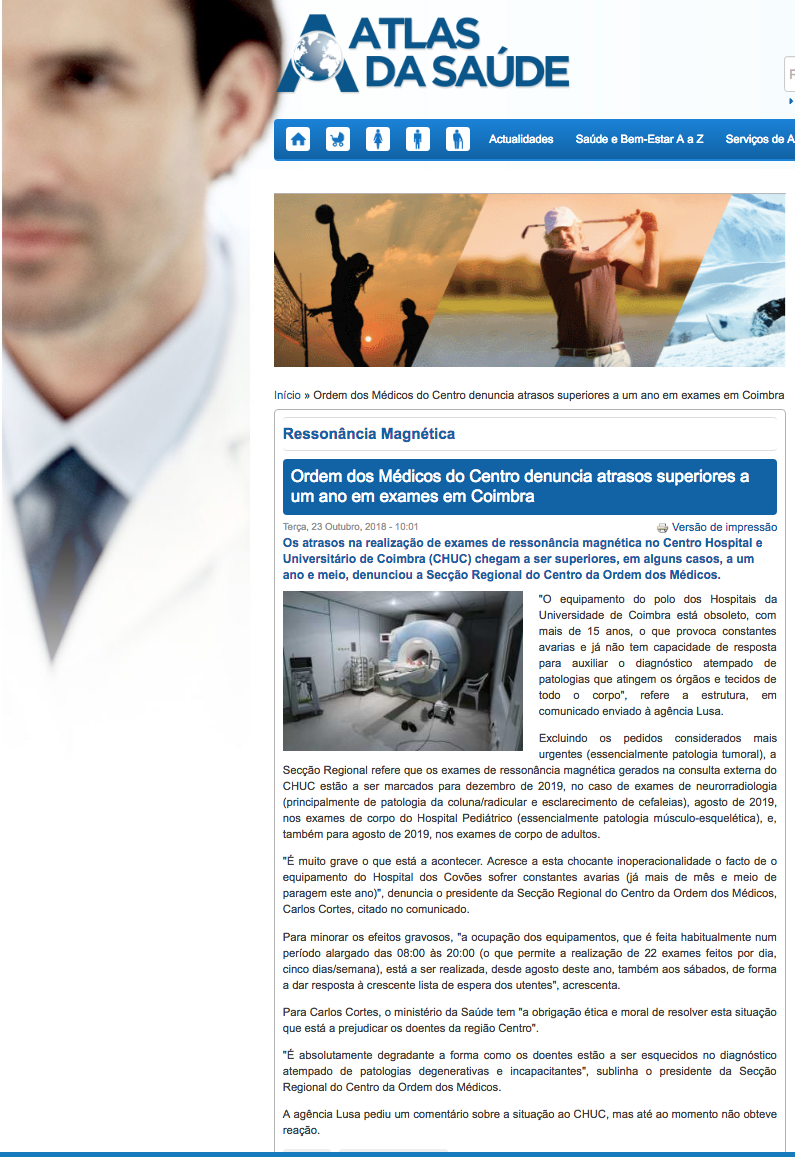 Ordem dos Médicos do Centro denuncia atrasos superiores a um ano em exames em Coimbra