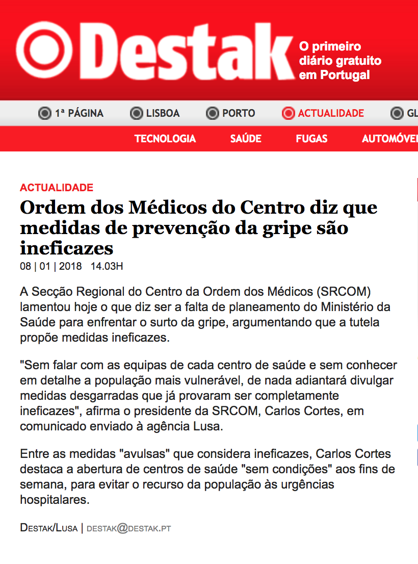 Ordem dos Médicos do Centro diz que medidas de prevenção da gripe são ineficazes