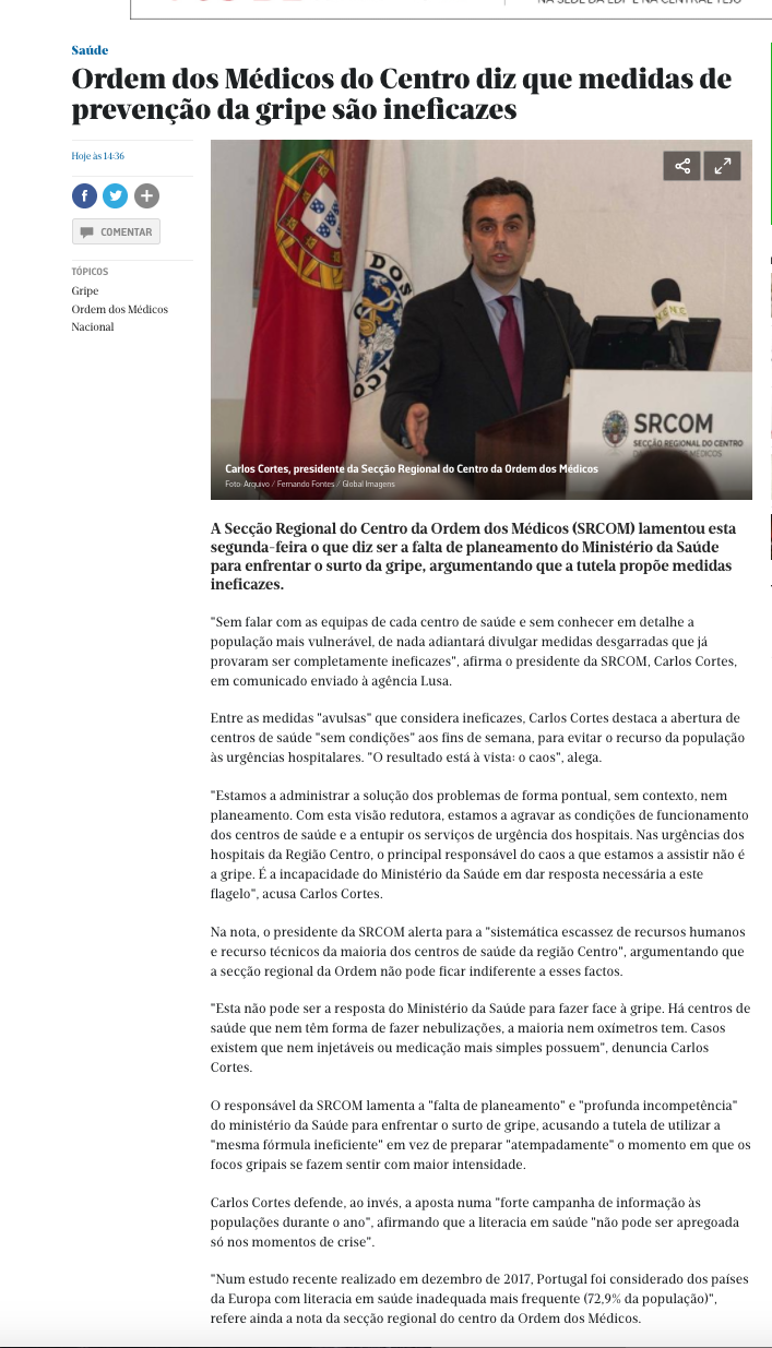 Ordem dos Médicos do Centro diz que medidas de prevenção da gripe são ineficazes
