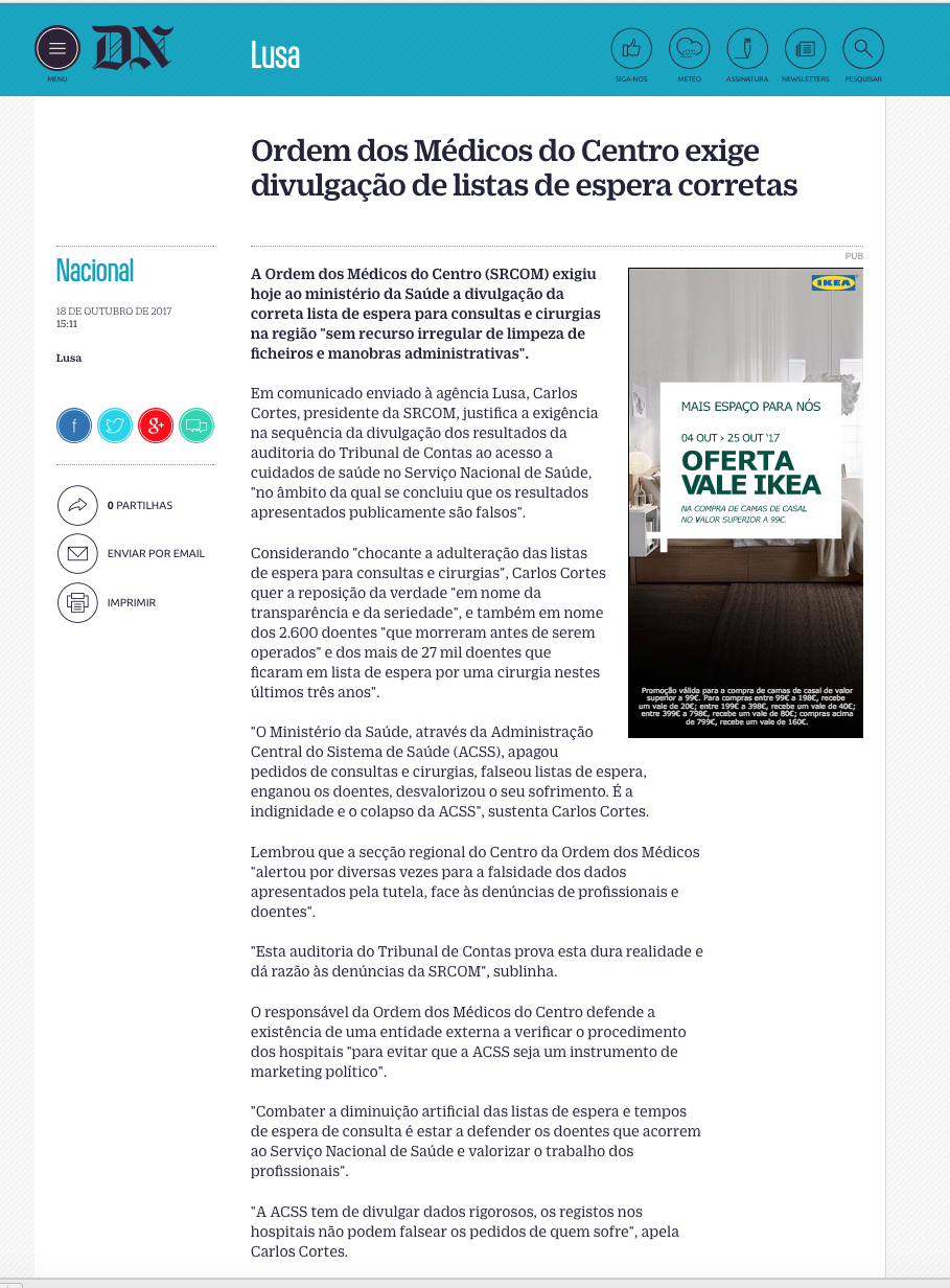 Ordem dos Médicos do Centro exige divulgação de listas de espera corretas