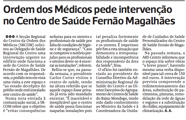 Ordem dos Médicos pede intervenção no Centro de Saúde Fernão de Magalhães