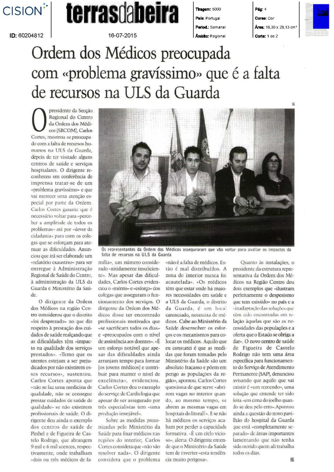 Ordem dos Médicos preocupada com “problema gravíssimo” que é a falta de recursos na ULS da Guarda