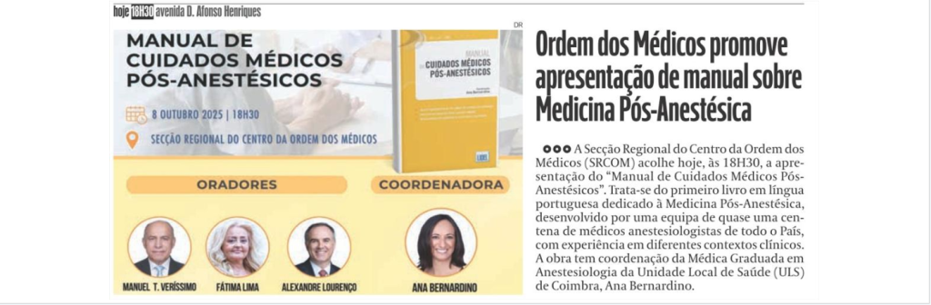Ordem dos Médicos promove apresentação de manual sobre Medicina Pós-Anestésica