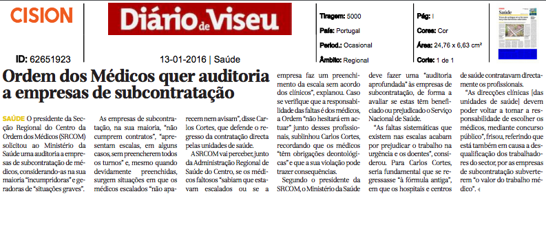 Ordem dos Médicos quer auditoria a empresas de subcontratação