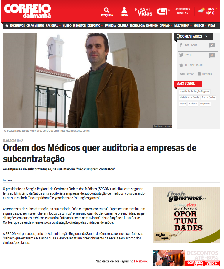 Ordem dos Médicos quer auditoria a empresas de subcontratação
