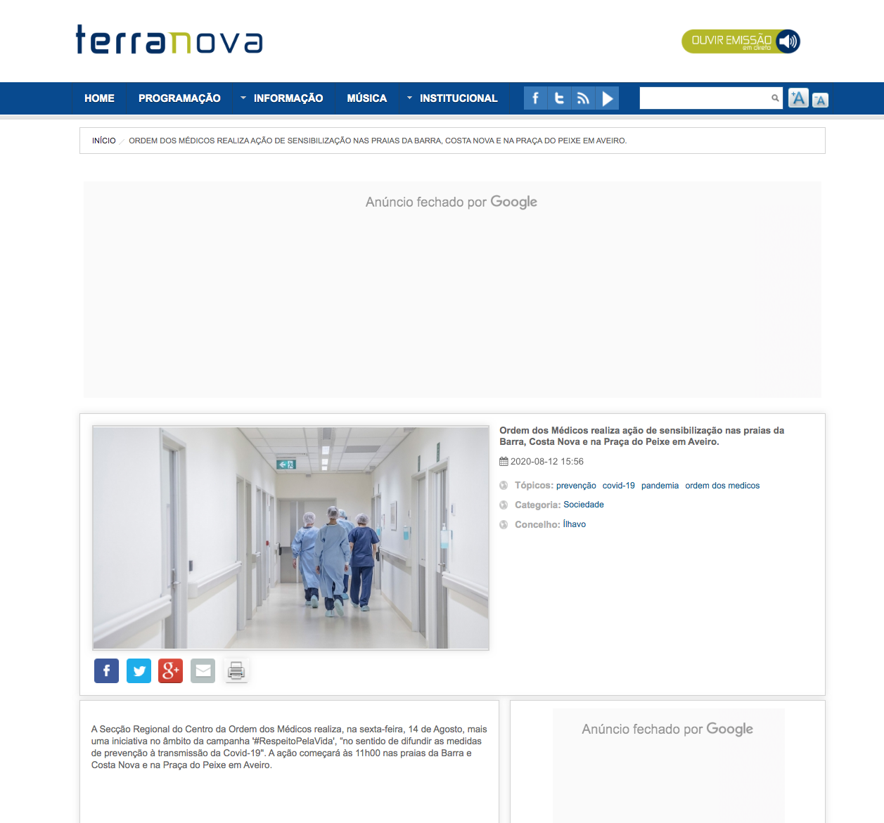 Ordem dos Médicos realiza ação de sensibilização nas praias da Barra, Costa Nova e na Praça do Peixe