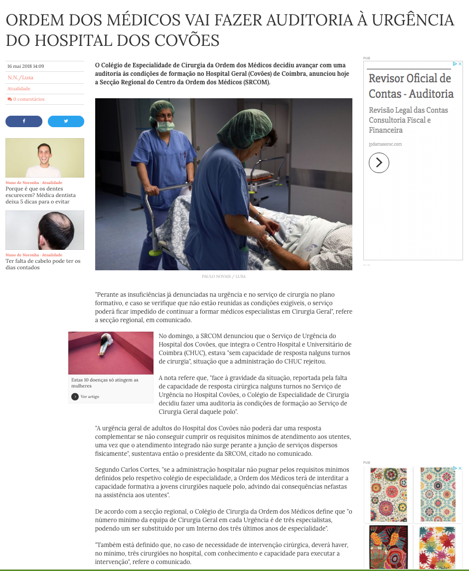 Ordem dos Médicos vai fazer auditoria às urgências do Hospital dos Covões
