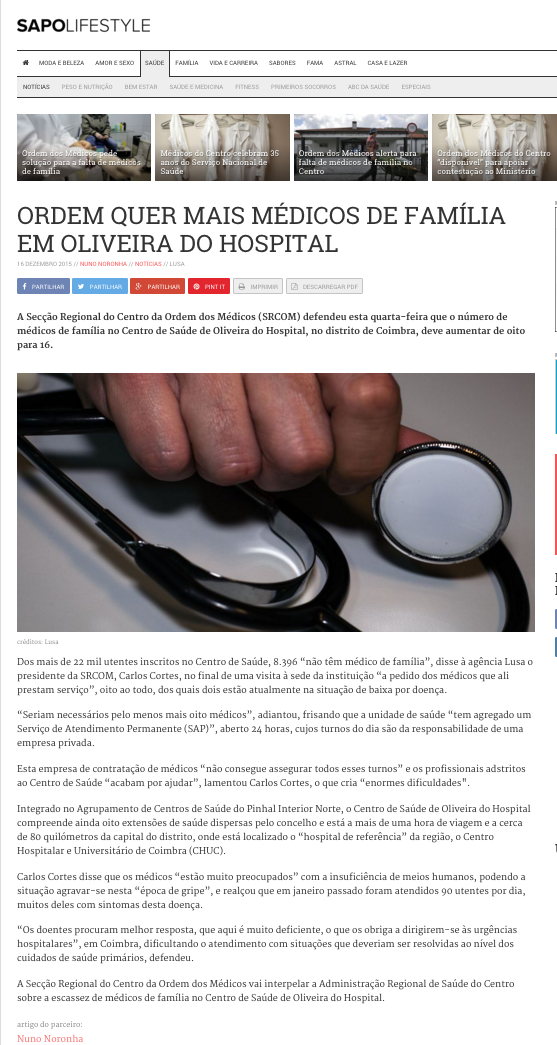 Ordem quer mais médicos de família em Oliveira do Hospital