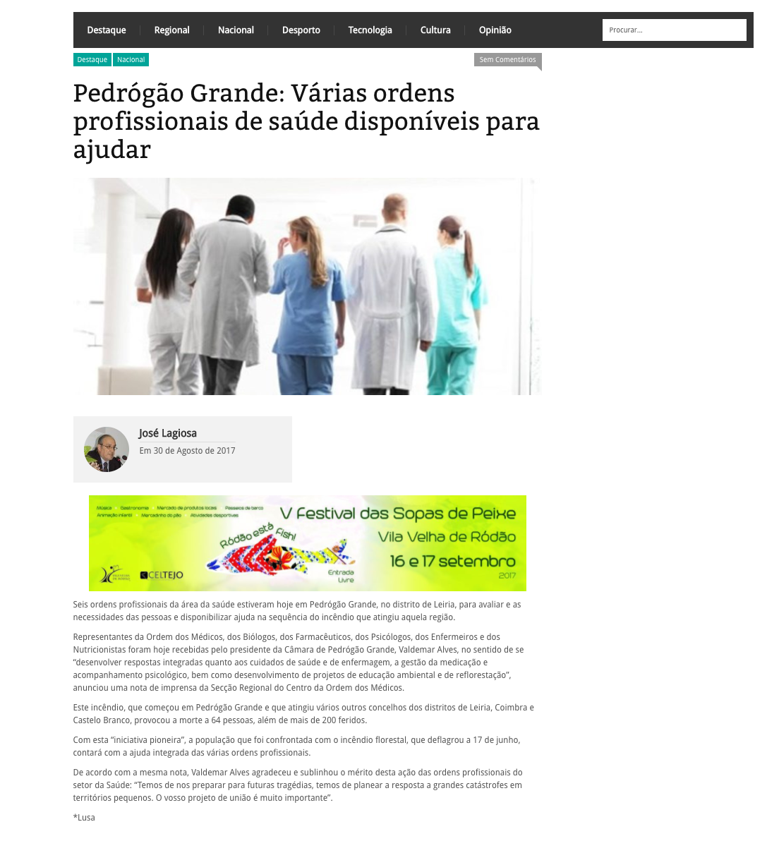 Pedrógão Grande: Várias ordens profissionais de saúde disponíveis para ajudar