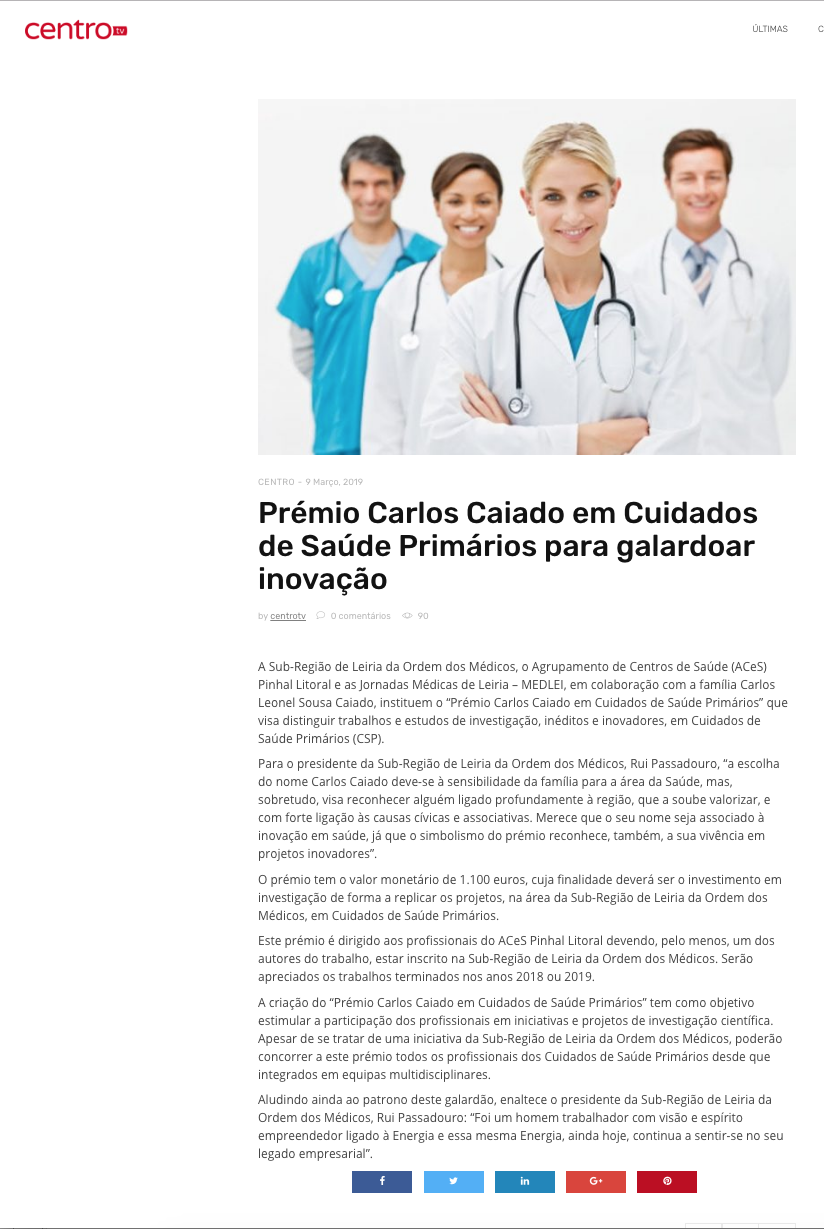 Prémio Carlos Caiado para premiar Cuidados de Saúde Primários