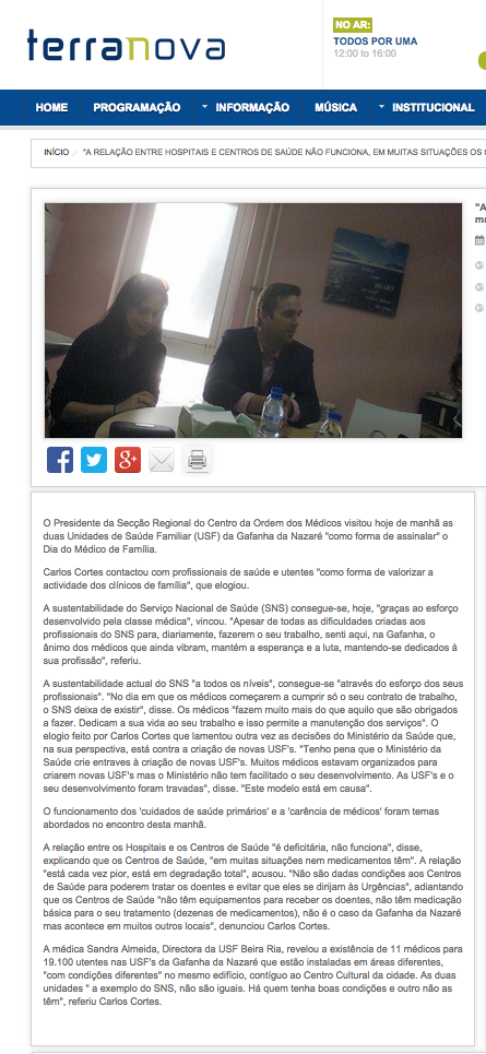Presidente SRCOM visita duas unidades USF da Gafanha da Nazaré