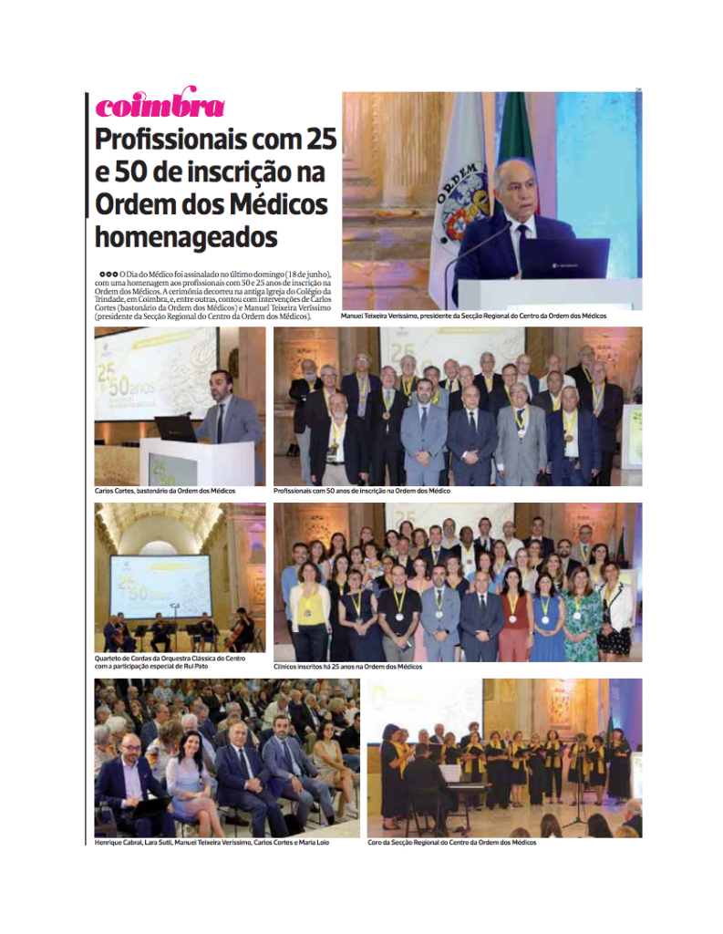 Profissionais com 25 e 50 de inscrição na Ordem dos Médicos homenageados
