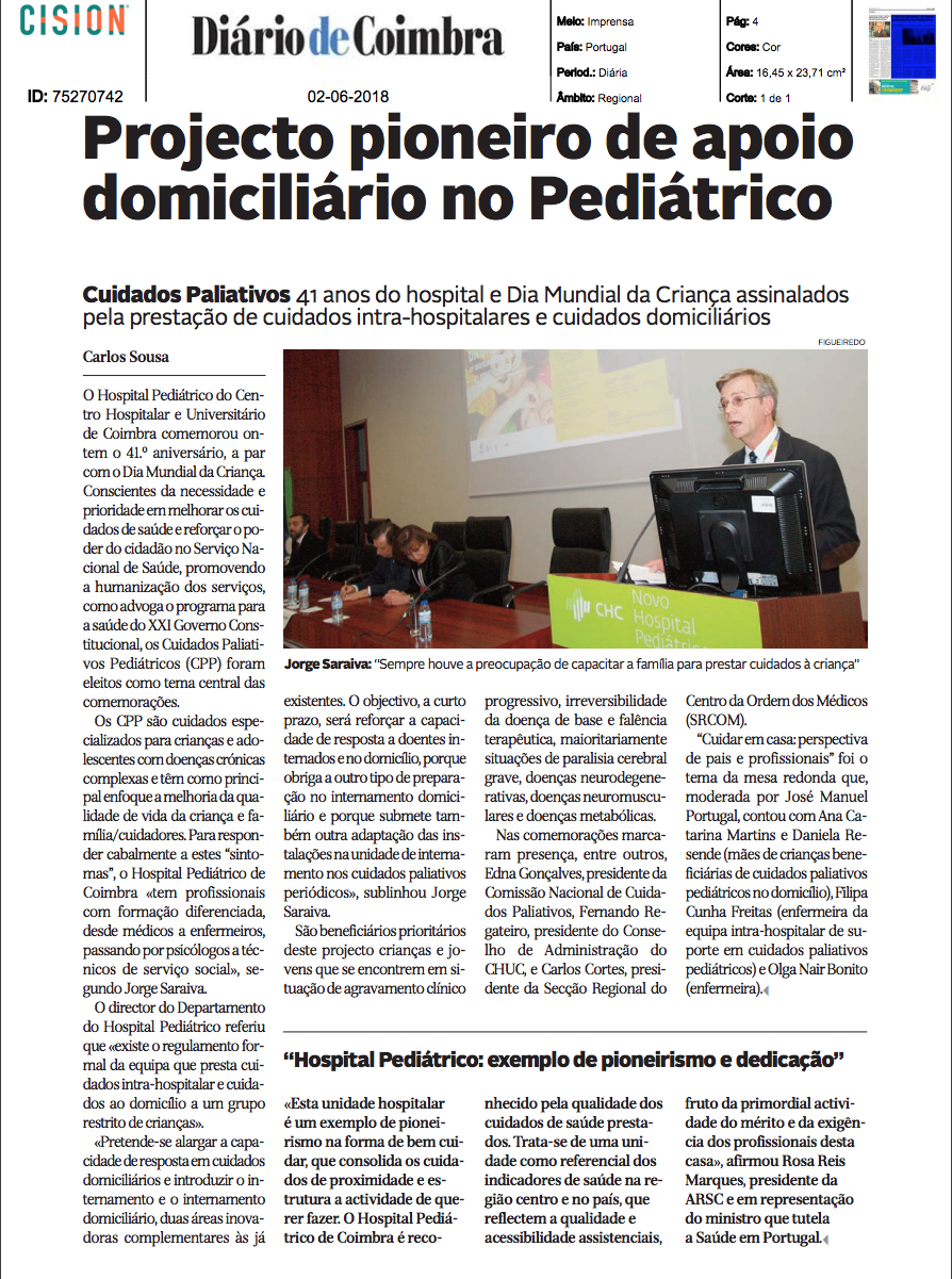 Projecto pioneiro de apoio domiciliário no Pediátrico
