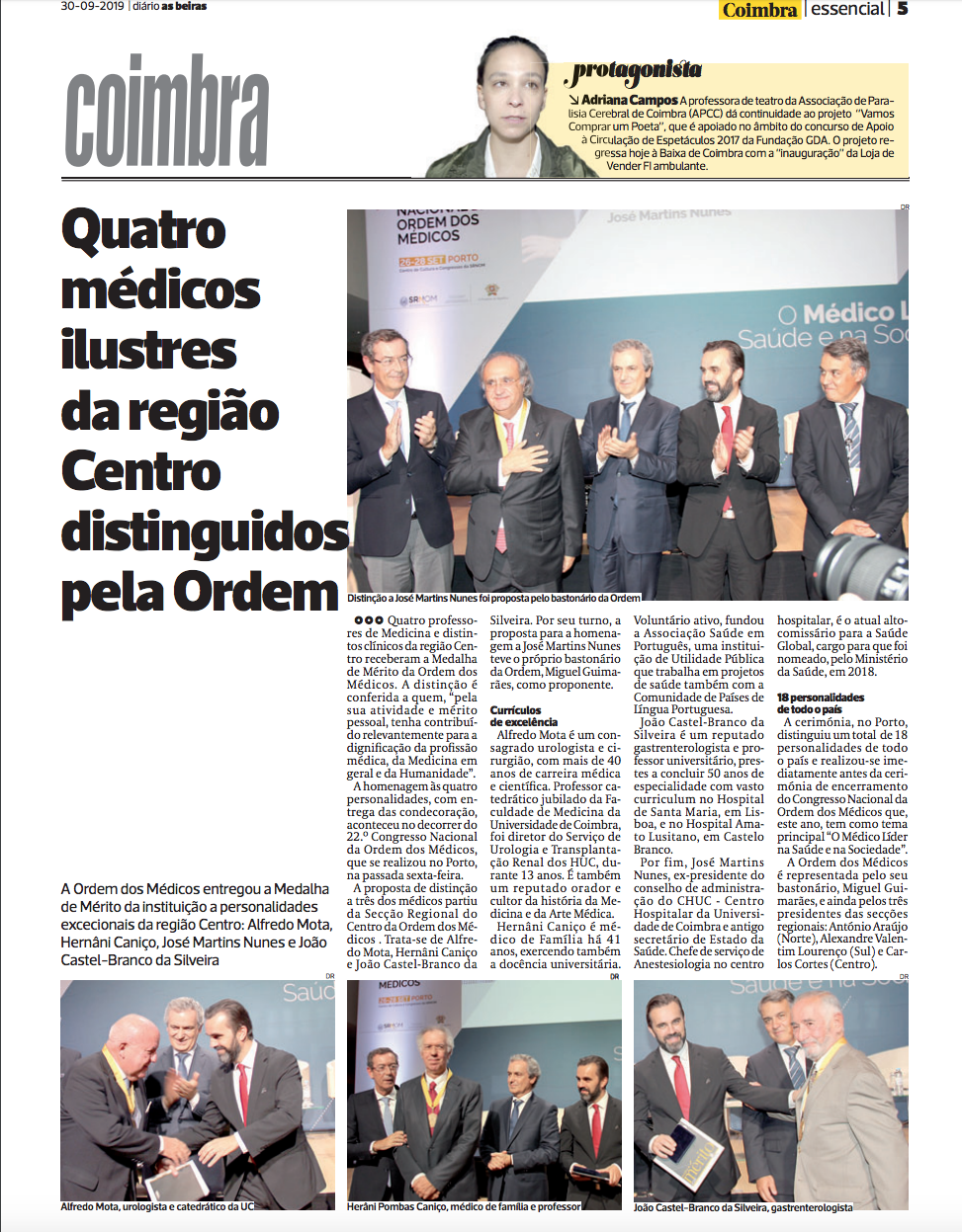 Quatro médicos ilustres da região Centro distinguidos pela Ordem