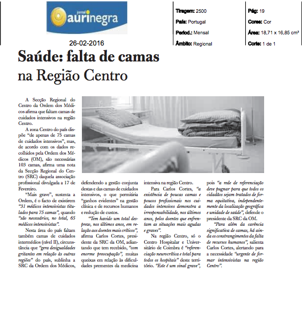 Saúde: falta de camas na Região Centro