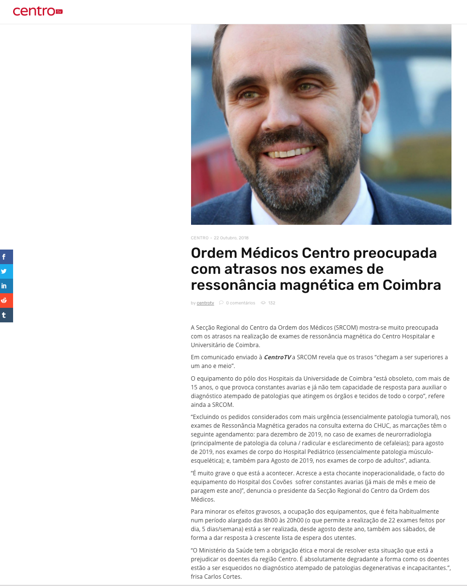 Saúde: Ordem adverte que há ressonâncias tardias no CHUC