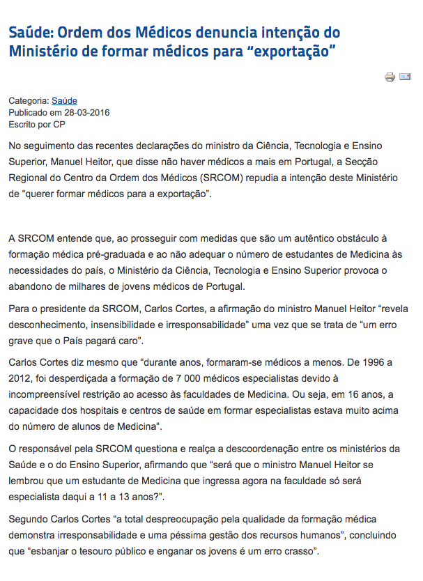 Saúde: Ordem dos Médicos denuncia intenção do Ministério de formar médicos para “exportação”