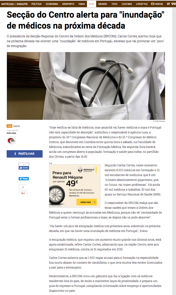 Secção do Centro alerta para “inundação” de médicos na próxima década