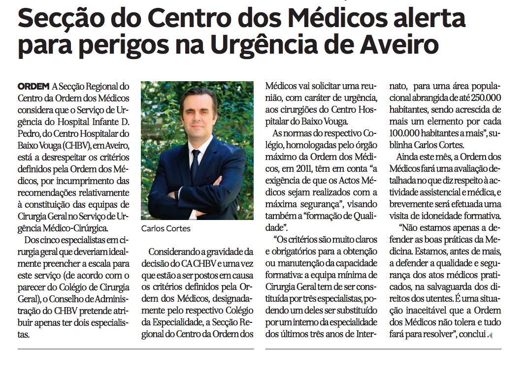 Secção do Centro alerta para perigos na Urgência de Aveiro