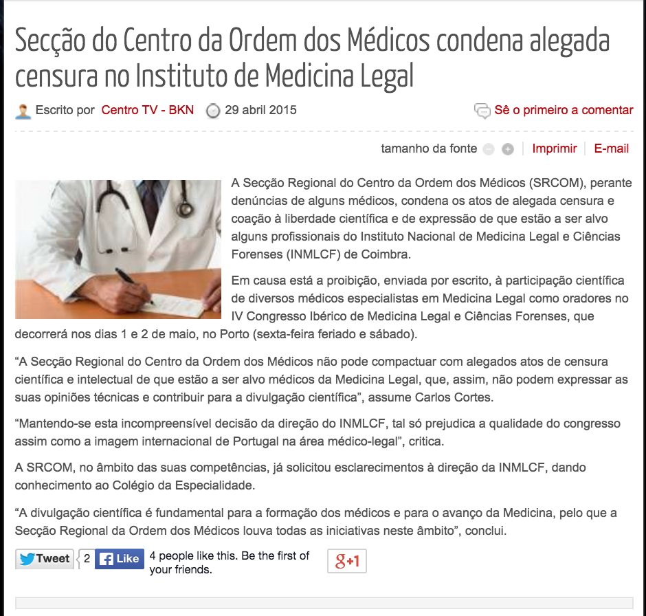 Secção do Centro da Ordem dos Médicos condena alegada censura no Instituto Nacional de Medicina Legal