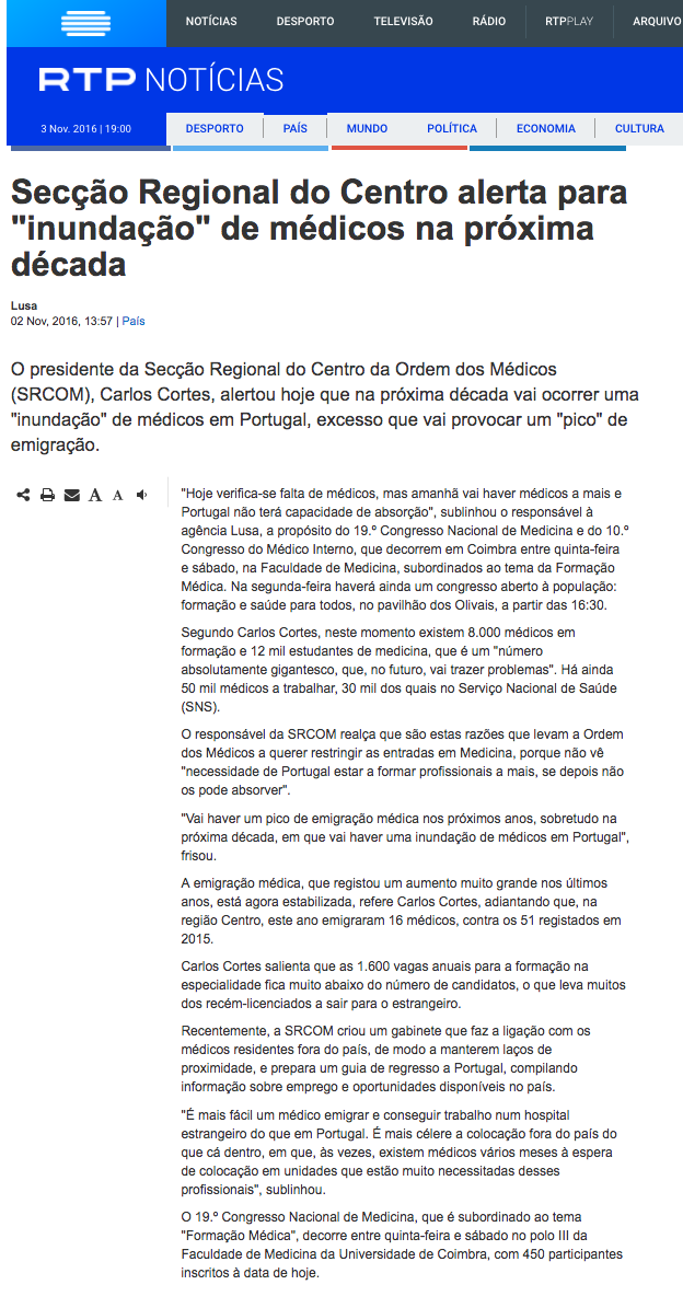 Secção Regional do Centro alerta para “inundação” de médicos na próxima década