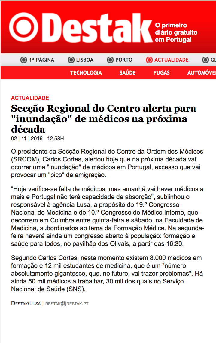 Secção Regional do Centro alerta para “inundação” de médicos na próxima década
