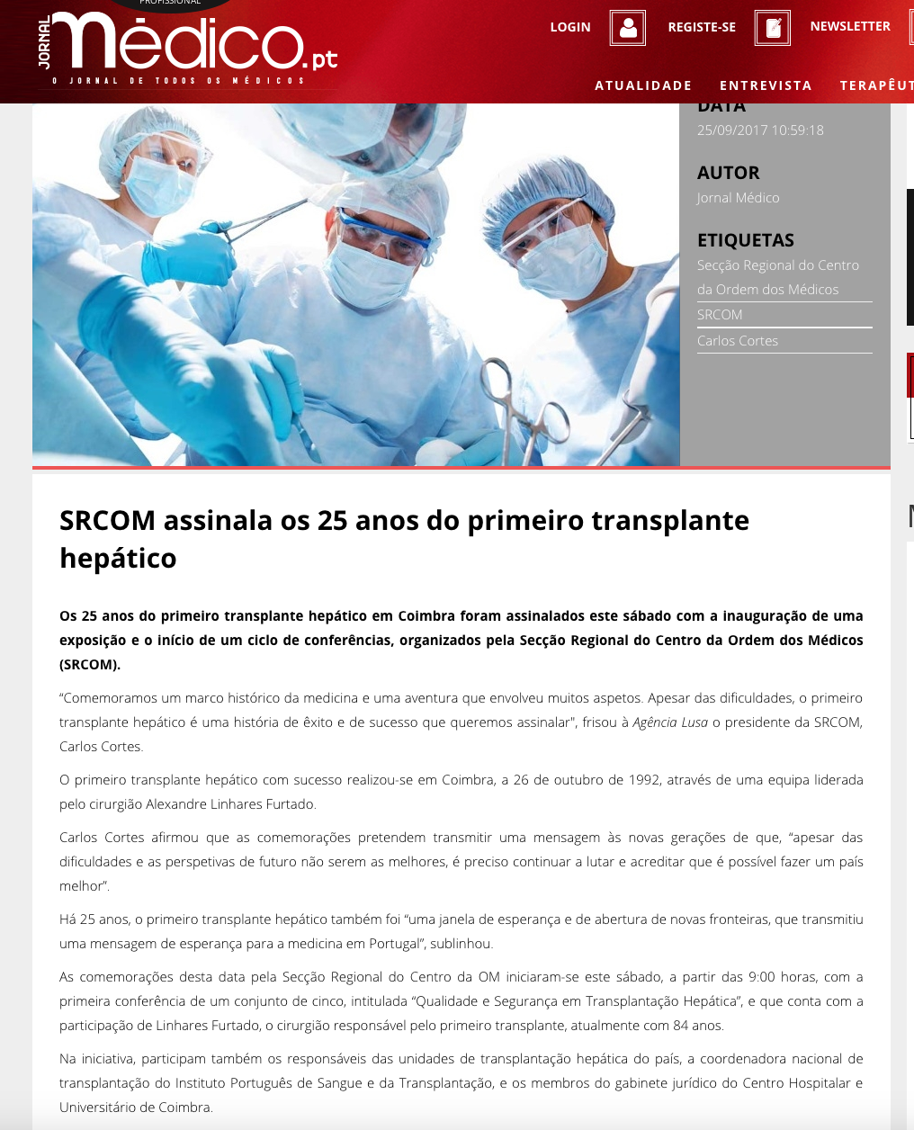SRCOM assinala os 25 anos do primeiro transplante hepático
