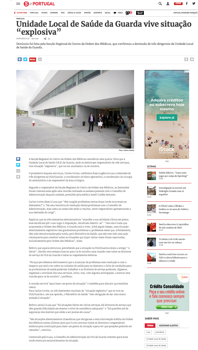 Unidade Local de Saúde da Guarda vive situação “explosiva”