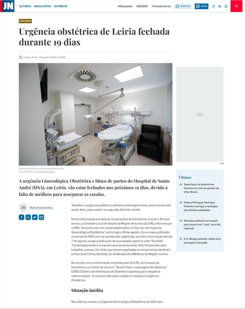 Unidade obstétrica de Leiria fechada durante 19 dias