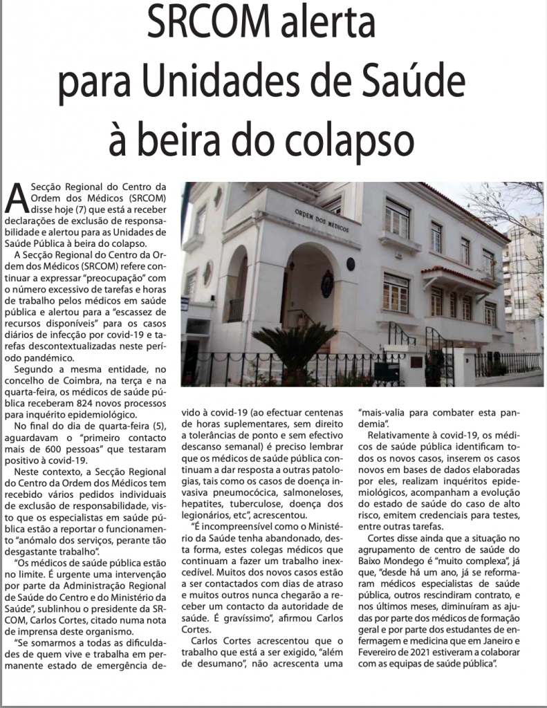 Unidades de Saúde Pública à beira do colapso alerta SRCOM