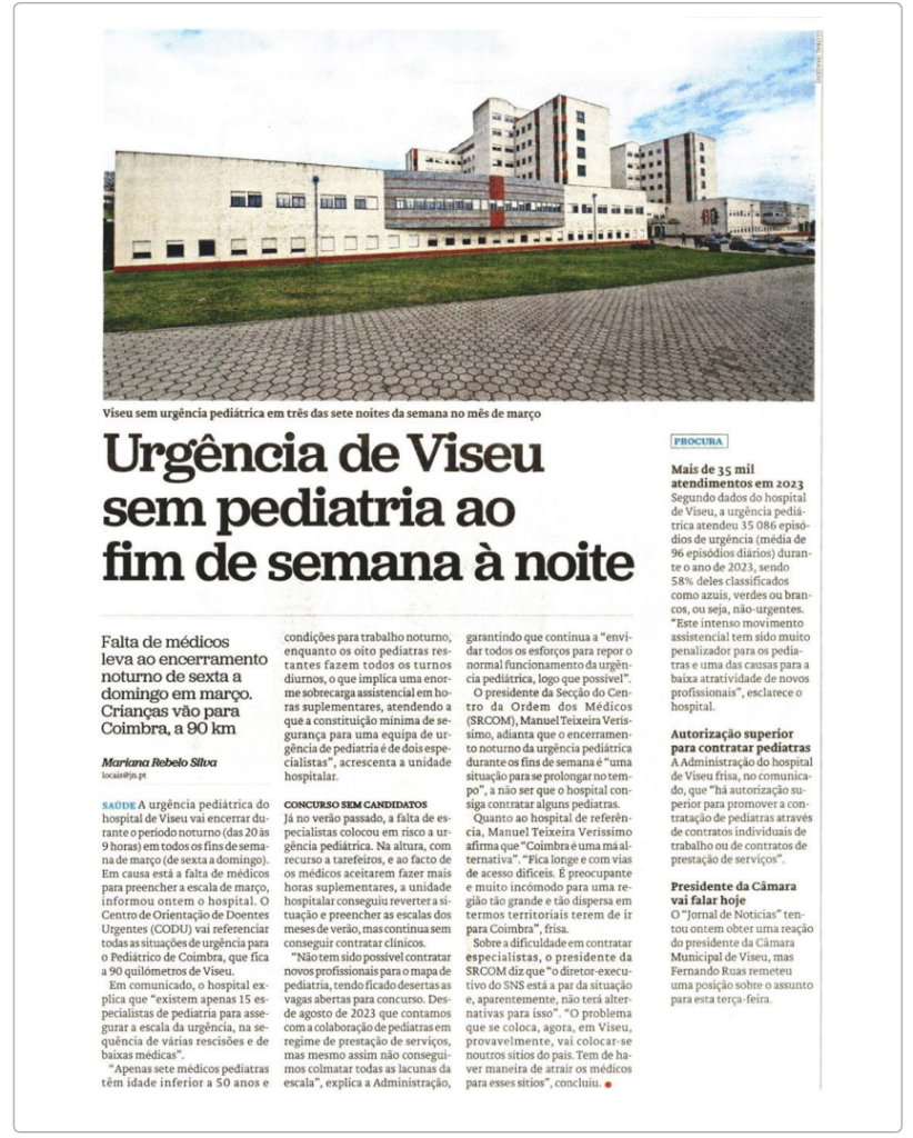 Urgência de Viseu sem pediatria ao fim de semana à noite
