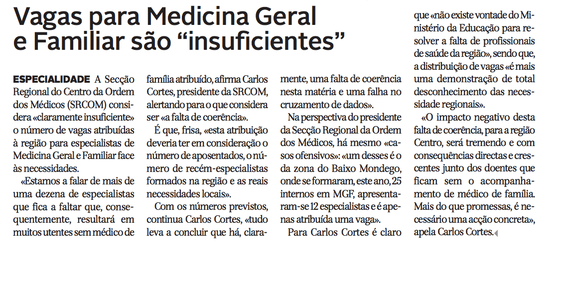 Vagas para Medicina Geral e Familiar são “insuficientes”