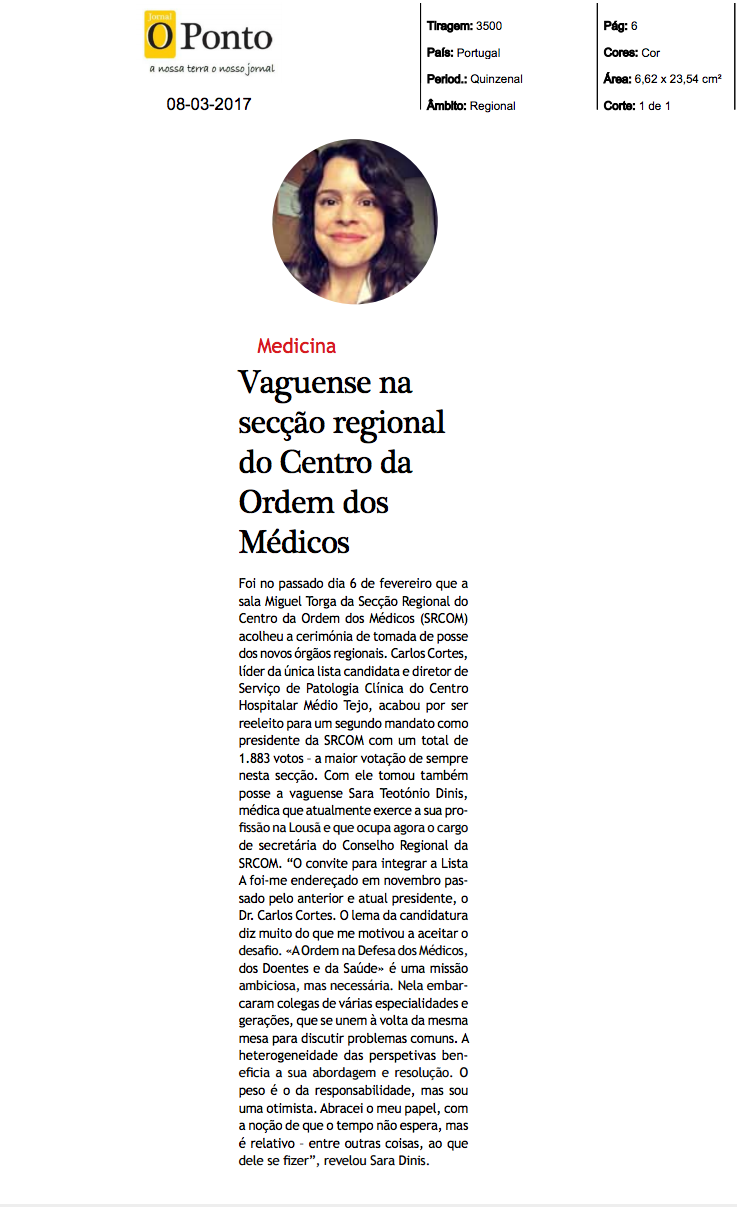 Vaguense na Secção Regional do Centro da Ordem dos Médicos