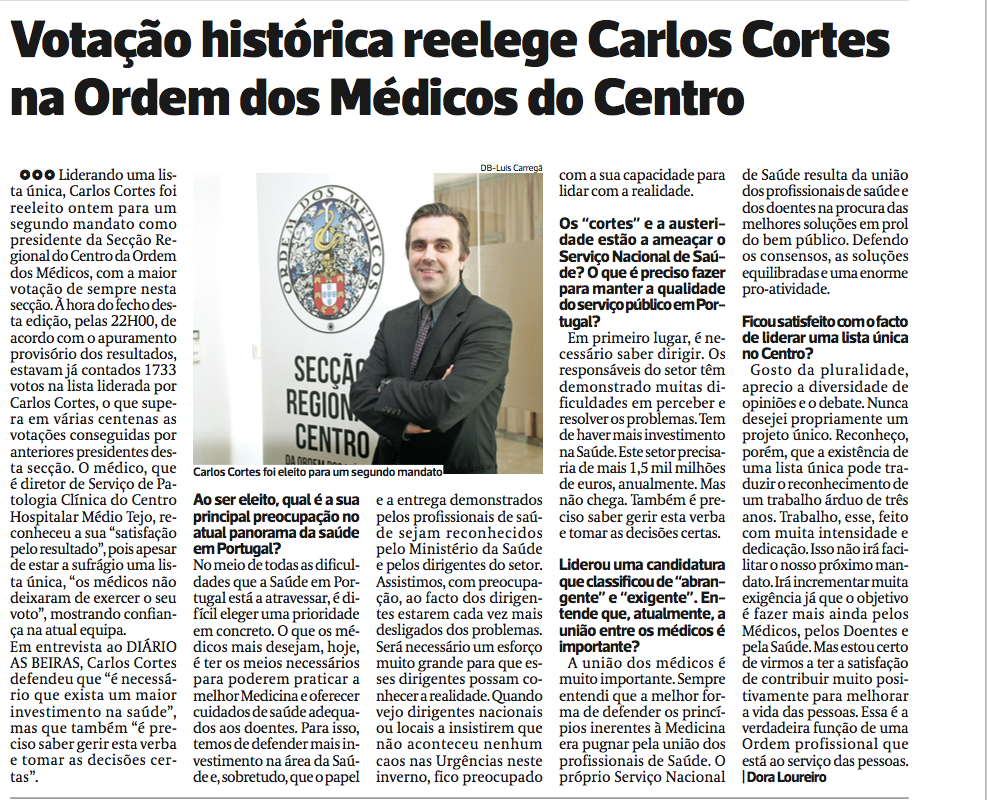 Votação histórica reelege Carlos Cortes na Ordem dos Médicos do Centro