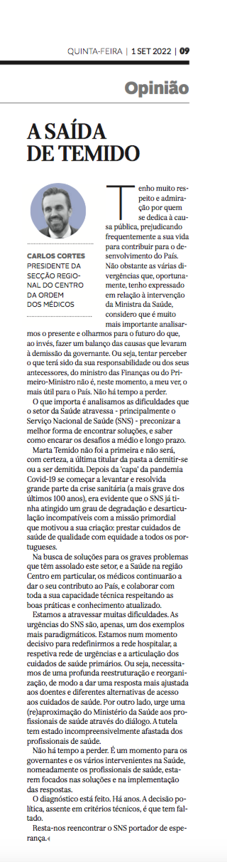 Publicado em: Diário de Coimbra, Diário de Aveiro, Diário de Leiria e Diário de Viseu