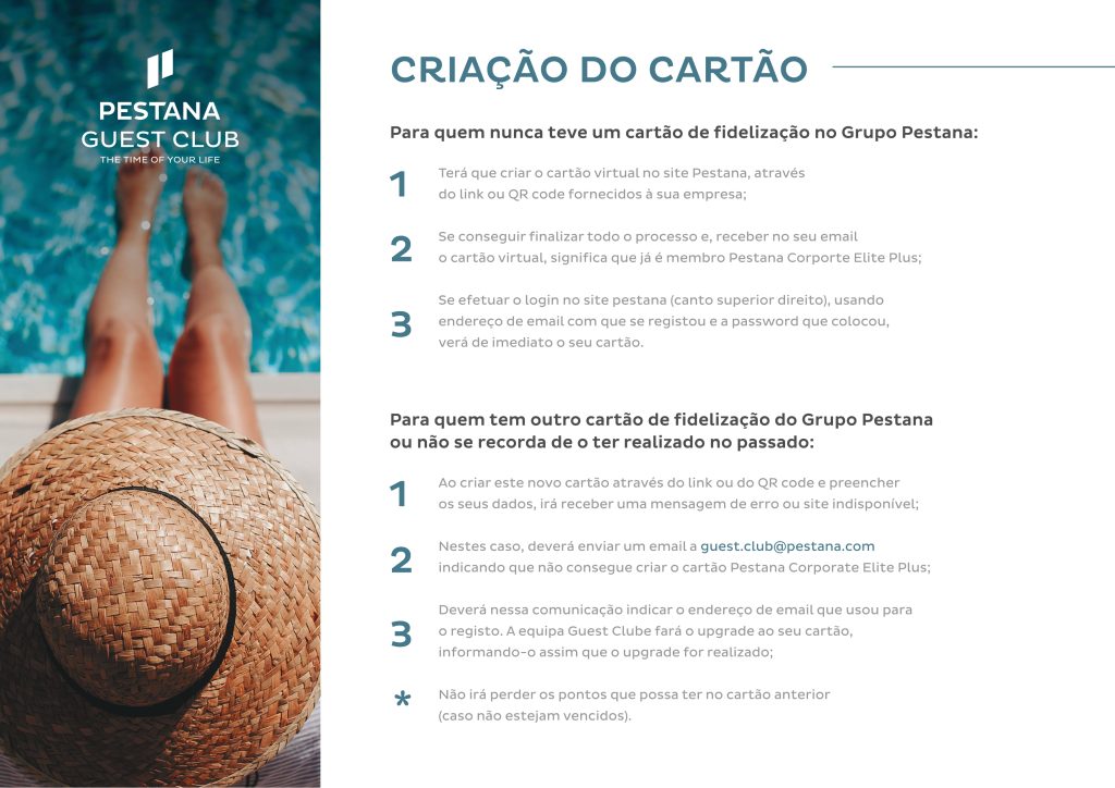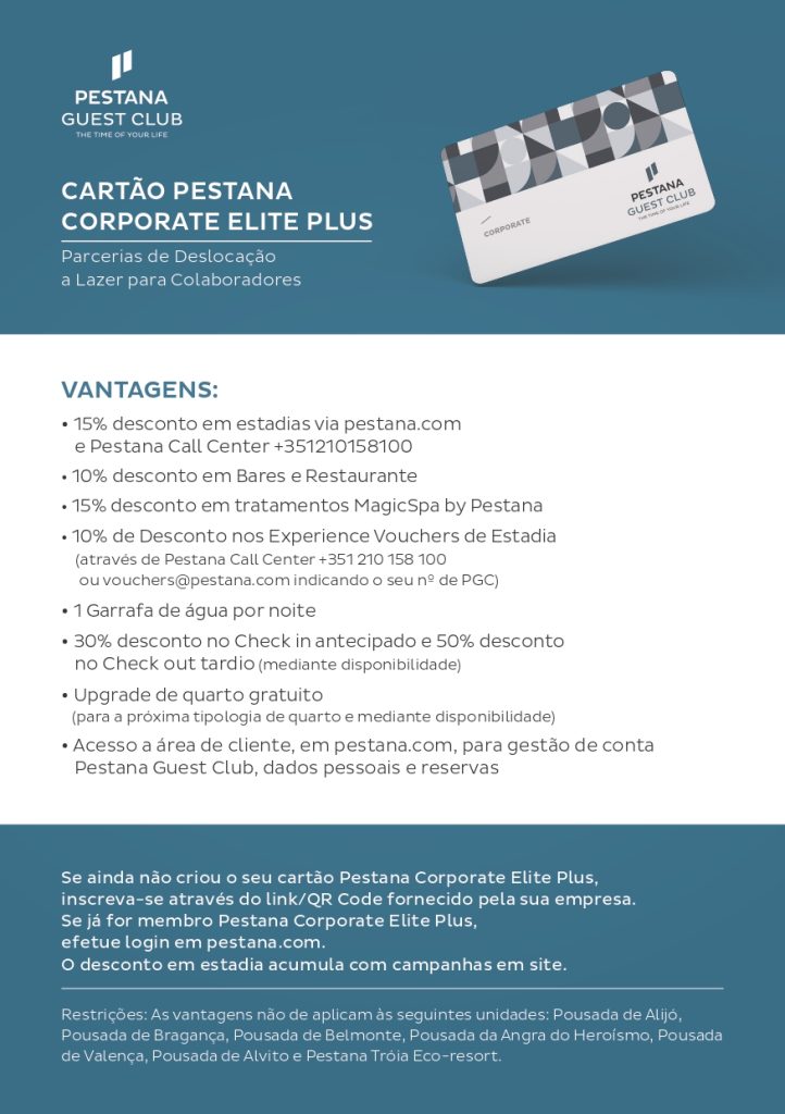 A campanha é acumulável com os benefícios de membro Pestana Guest Club – Pestana Corporate.